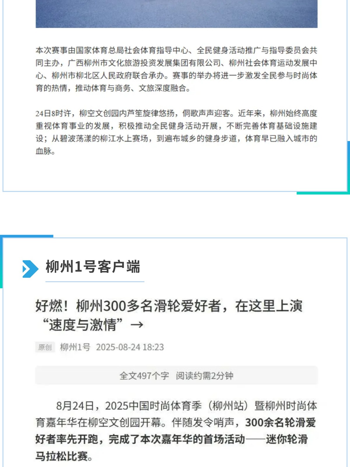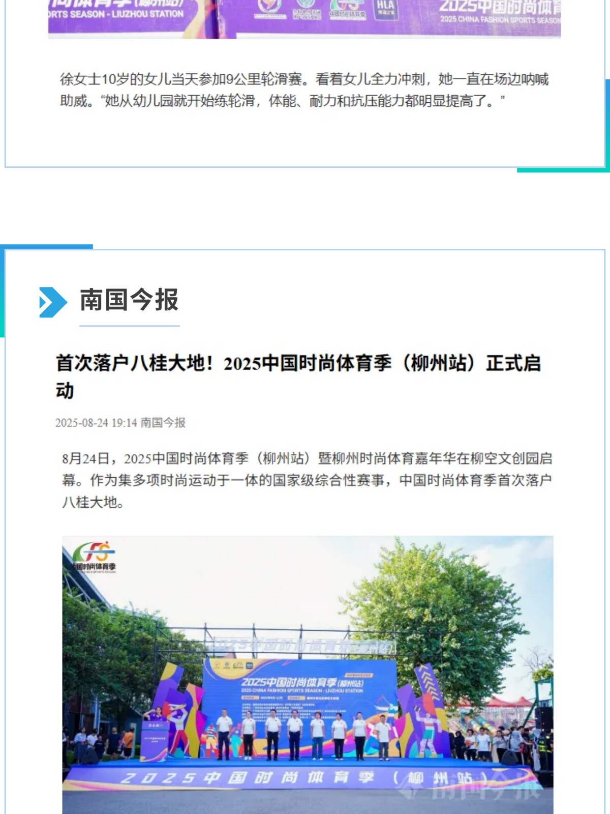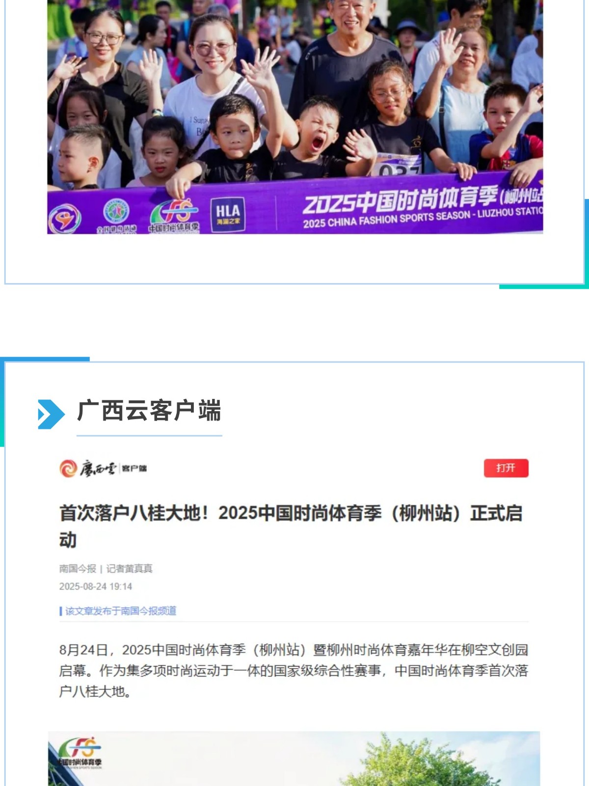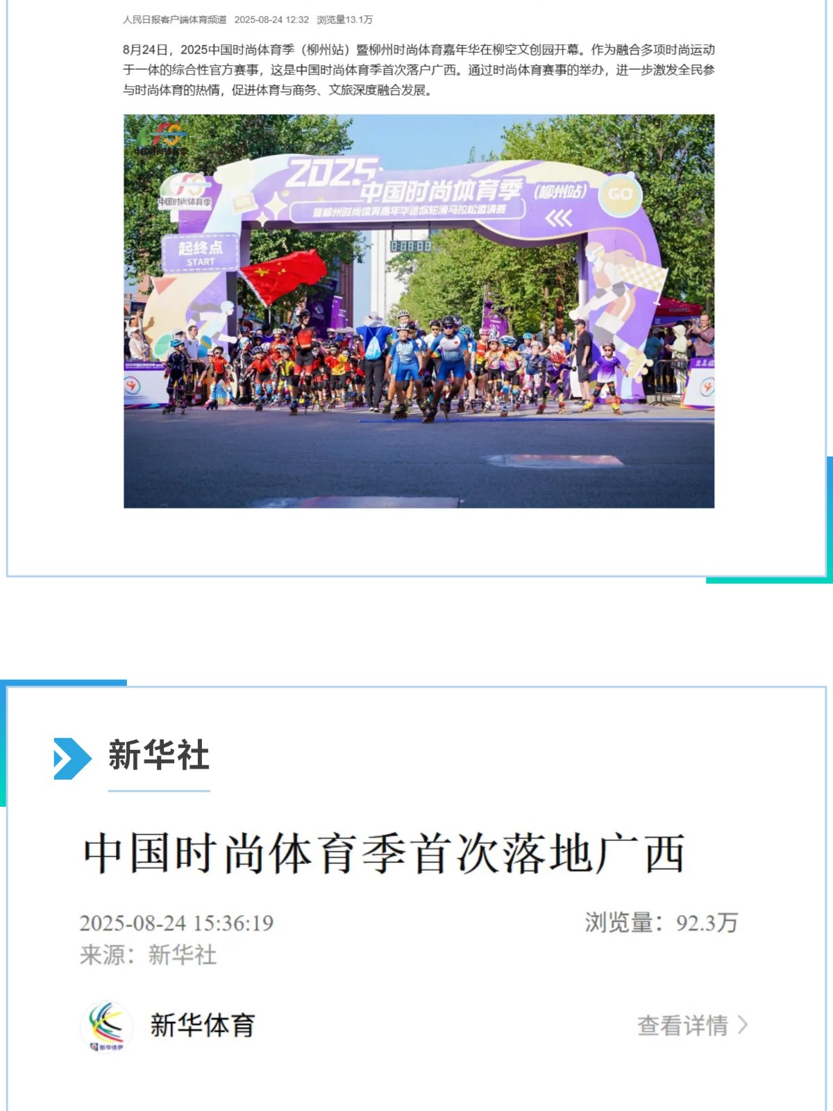多家媒體關注:2025中國時尚體育季(柳州站)在柳空文創(chuàng)園啟動 發(fā)布時間:2025年08月29日 17時來源:本站原創(chuàng)瀏覽:185 人次