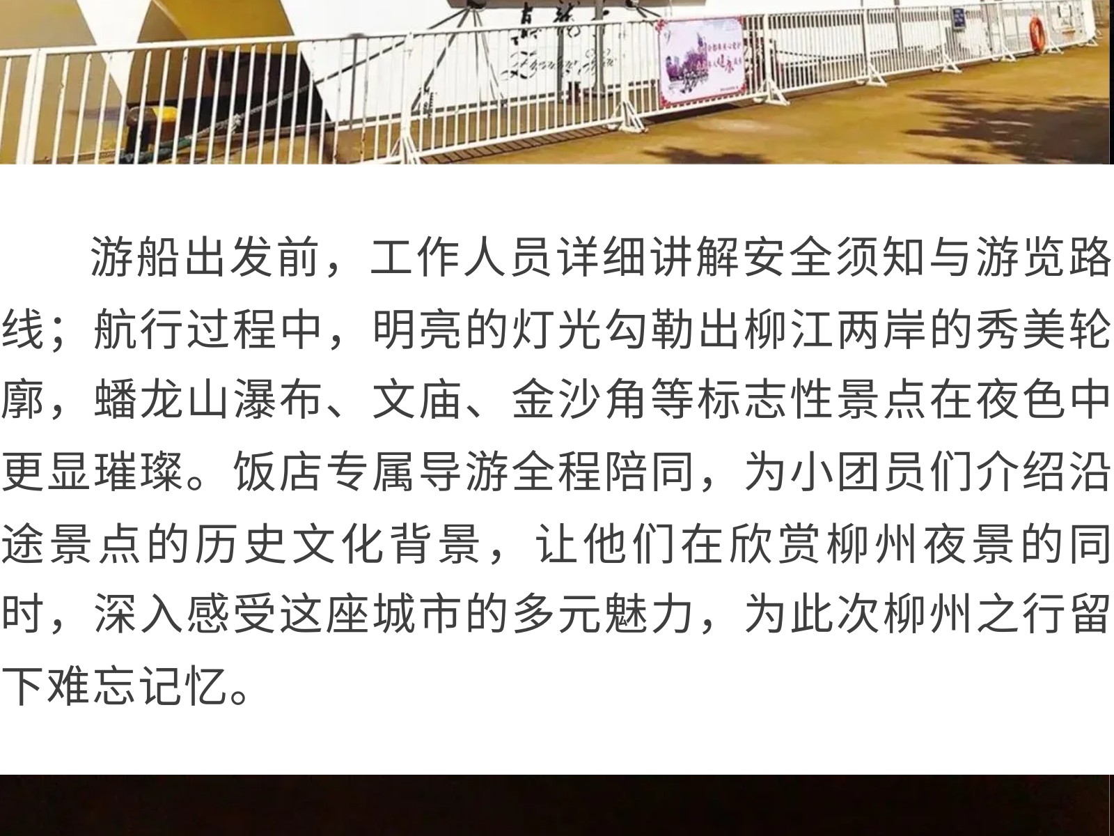 柳州飯店暖心接待北?!靶『B荨?,乘“真龍?zhí)枴惫操p柳江夜景暢談雙城情誼 發(fā)布時間:2025年11月07日 10時來源:本站原創(chuàng)瀏覽:57 人次
