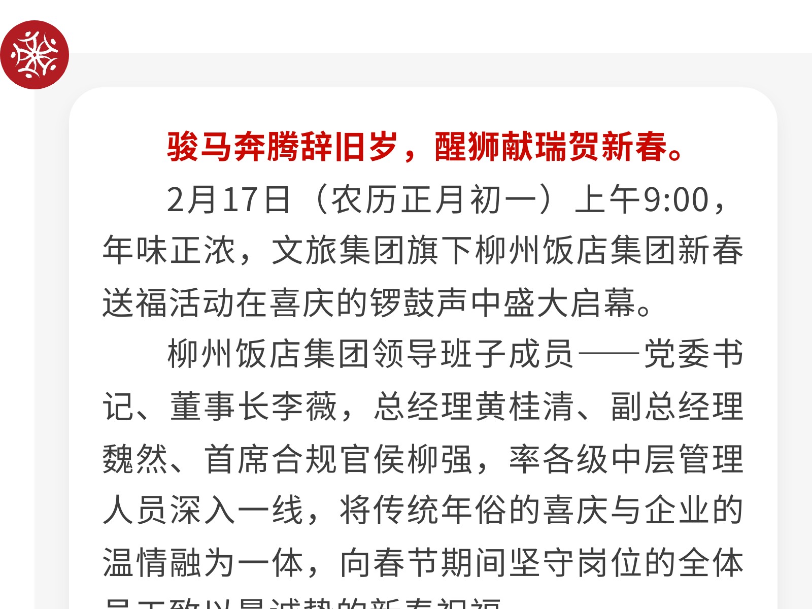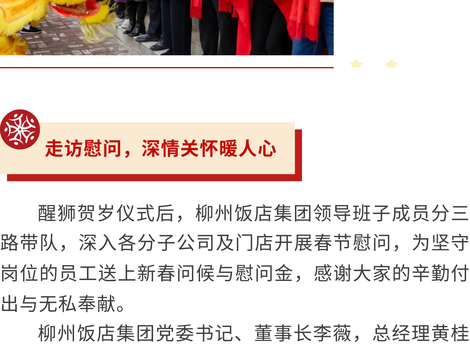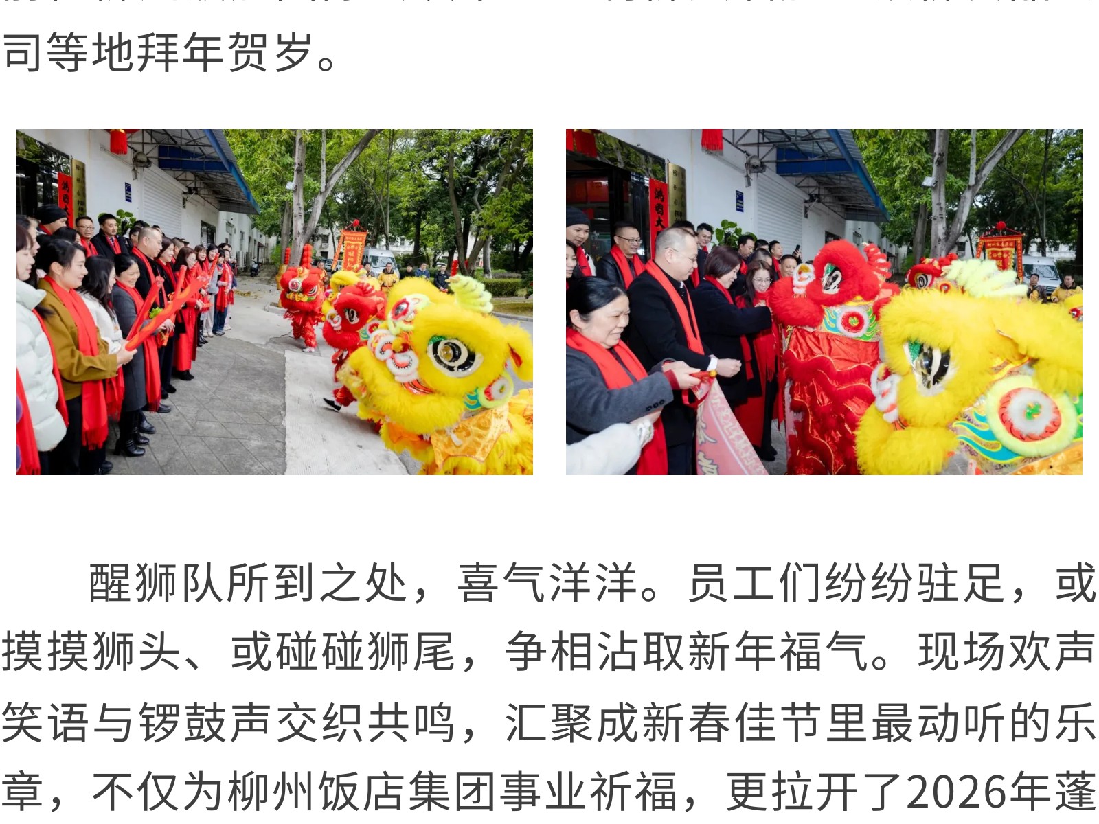 龍騰獅躍賀新春,情暖一線送福至——柳州飯店集團(tuán)開展2026年新春送福慰問活動 發(fā)布時間:2026年02月24日 13時來源:本站原創(chuàng)瀏覽:83 人次